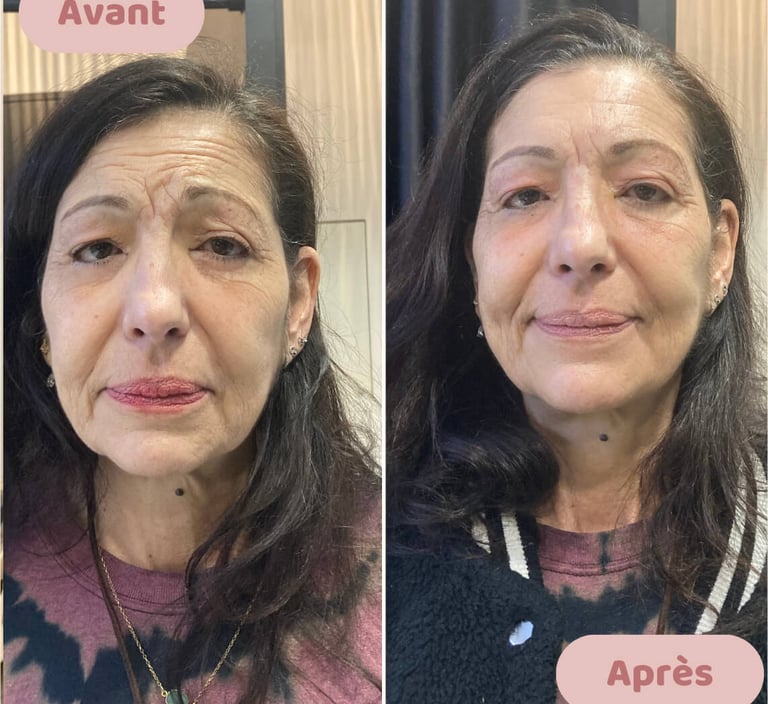 Résultats impressionnants dès la première séance ! Ma peau est plus lumineuse et les rides sont visiblement atténuées.